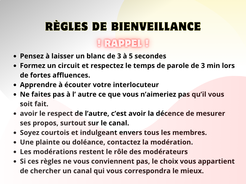 La courtoisie, la politesse et la bienveillance seront les valeurs fondamentales de ce canal.